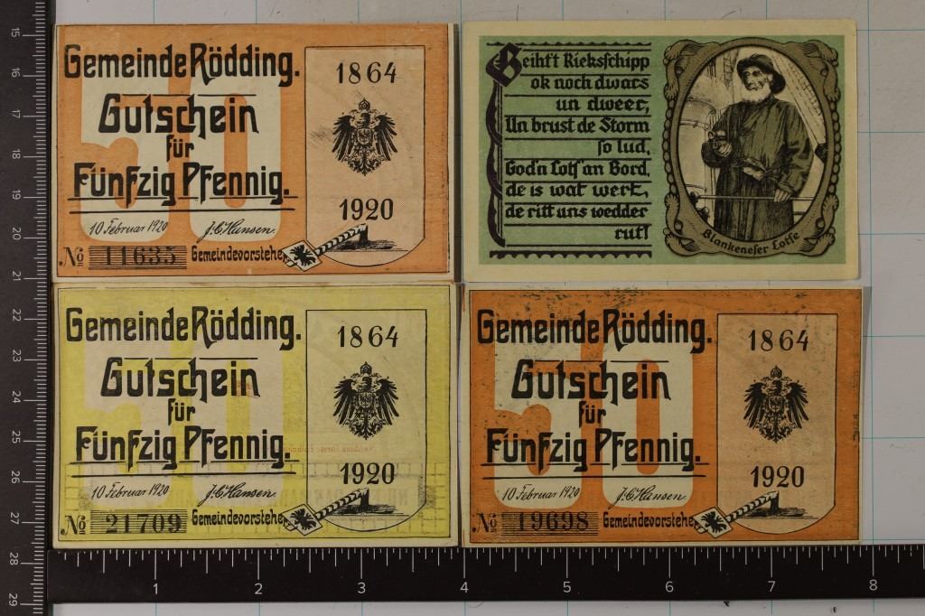 #208 Lot 208 3-1920 & 1-1921 GERMAN CRISP UNC NOTGELDS: 1-1920