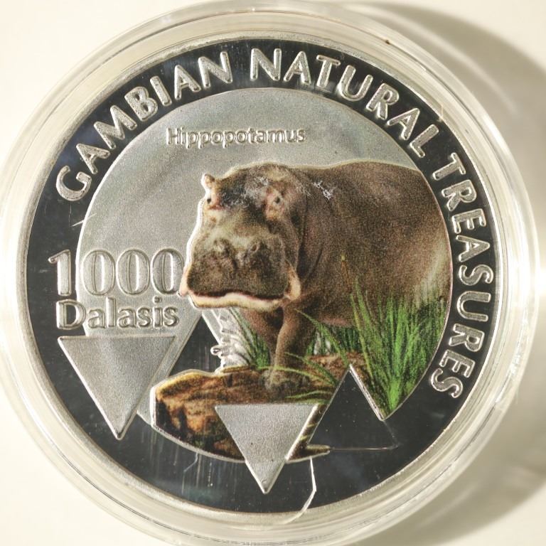 #213 Lot 213 2015 GAMBIA PROOF 1000 DALASIS "HIPPO" FROM THE
