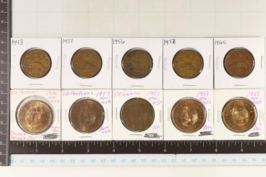 #243 Lot 243 10 ASSORTED MEXICO COINS: FIVE-20 CENTAVOS AND