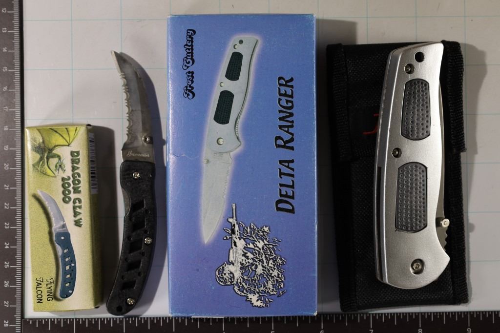 UNFOLDED DRAGON CLAW AND 8.5" DELTA RANGER WITH SHEATH. BOTH IN ORIGINAL BOXES.
