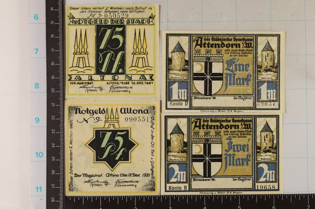 #288 Lot 288 4-1921 GERMAN CRISP UNC NOTGELDS: 2-75 PFENNING