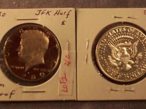 1968-S JFK HALF DOLLAR AND 1980-S JFK HALF DOLLAR BOTH GEM PROOF