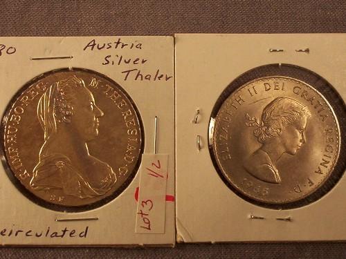 1780 AUSTRIAN SILVER THALER, UNCIRCULATED AND 1965 CHURCHILL CROWN, UNCIRCULATED