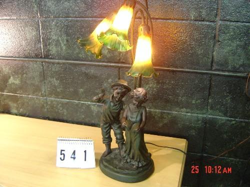 Lot 541 BRONZE STYLE LAMP WITH BOY AND GIRL BASE AND 3 YELLOW TULIP SHADES