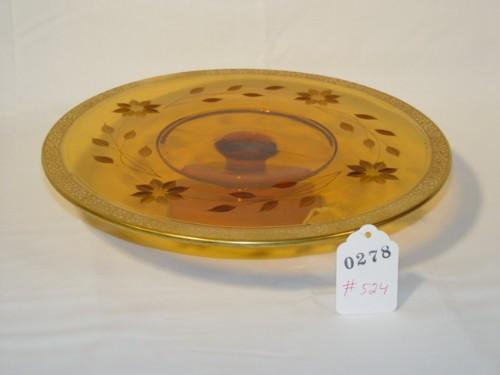 AMBER GLASS ETCHED COMPOTE GILT BORDER