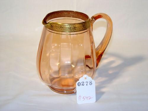 PINK GLASS GILT BANDED 9" PITCHER
