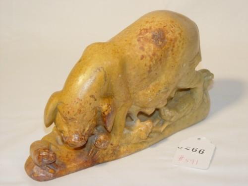 SOAPSTONE PIG AND PIGLETS FIGURINE