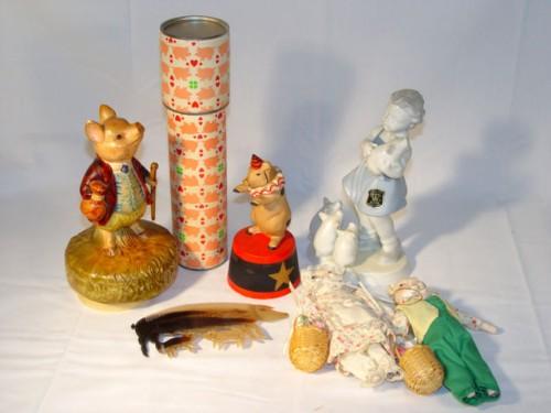 TRAY LOT PIG COMB, KALEIDOSCOPE, MUSIC BOXES, ETC.