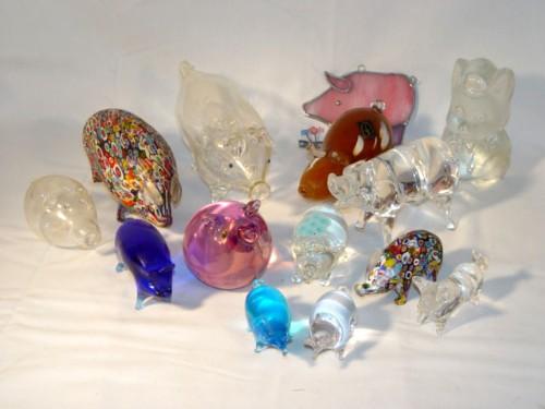 TRAY LOT GLASS PIG FIGURES INCL MILLE FIORI