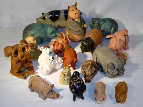 TRAY LOT PIG FIGURES INCL POTTERY PIG