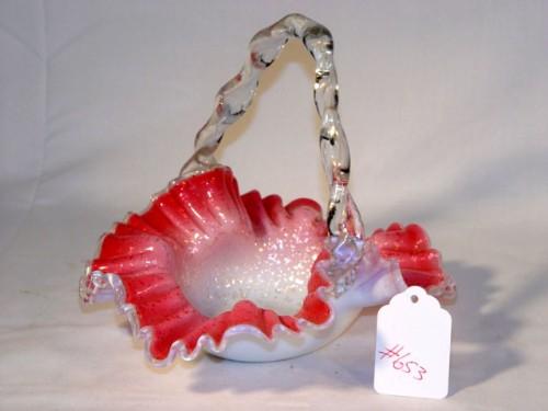 CASED GLASS FLUTED ART GLASS BASKET