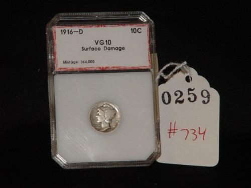1916D MERCURY DIME SLABBED AND GRADED VG10