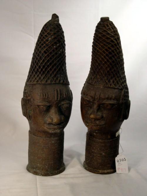 PAIR OF METAL AFRICAN HEADS 17" HIGH