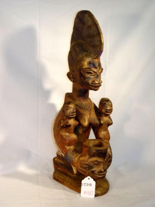 CARVED AFRICAN FIGURE MOTHER & 2 CHILDREN