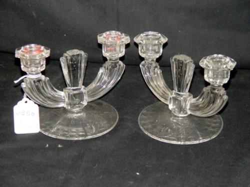 PR DBL BRANCH ETCHED GLASS CANDLE HOLDERS