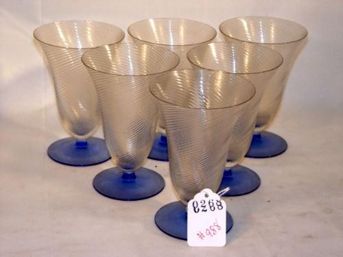 LOT 6 BLUE BASE SWIRL GLASS GOBLETS