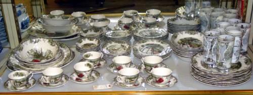 SET JOHNSON BROS FRIENDLY VILLAGE CHINA AND GLASSES