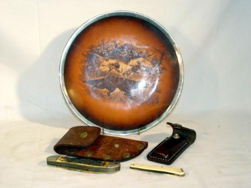DOG PLATE WITH 3 FOLDING KNIVES