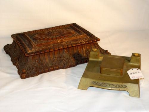 ART NOUVEAU INKWELL AND WOODEN DRESSER BOX