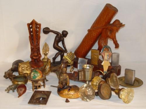 BOX LOT DISCUS THROWER, WOODEN FIGURES, PHEASANTS, ETC.