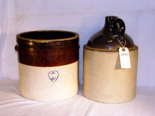 BROWN AND WHITE JUG AND CROCKE - 2X THE MONEY