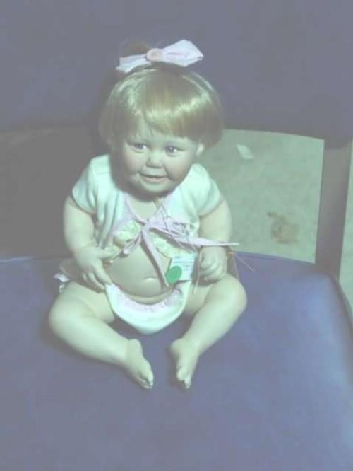 Picture Perfect Babies Collection "Cute as a Button" Artist Titus Tomescu 10.5 " seated Porcelain & cloth 1993