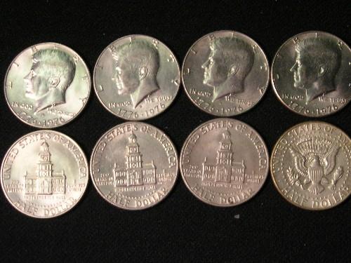 7 KENNEDY HALF DOLLARS, 6 1776-1976, 1 1967 SILVER CLAD