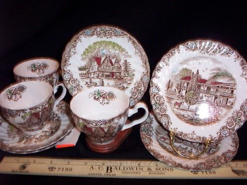 8 PIECES, 3 CUPS AND SAUCERS, TWO DESSERT PLATES JOHNSON BRO.