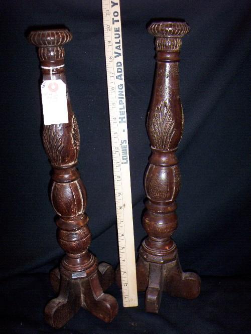 TWO 20" HAND CARVED ROSEWOOD CANDLE STICKS