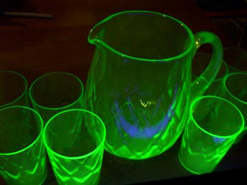 JUICE SET, 9 PIECES, PITCHER & 8 GLASSES, PROBABLY "FLAT DIAMOND"