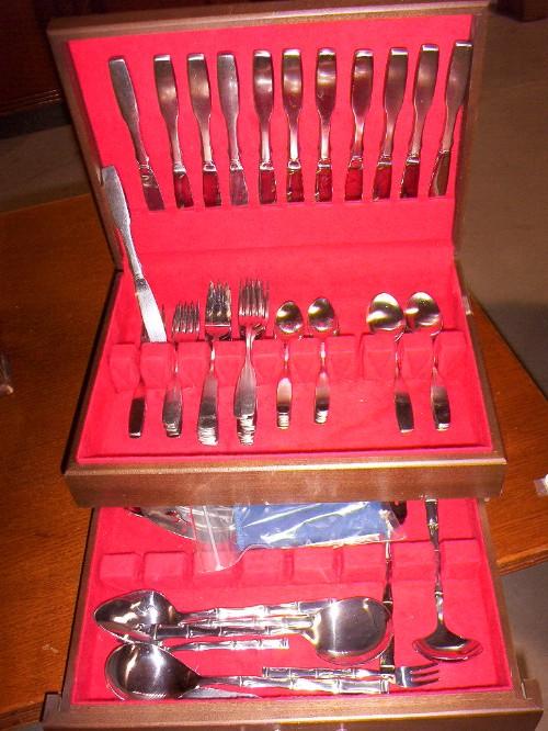 STAINLESS FLATWARE IN WOODEN BOX