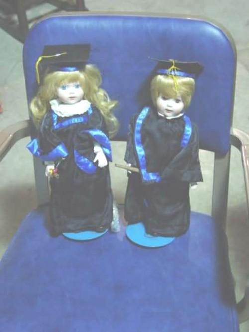 Twin Graduates by Marian Yu (Boy & Girl) Porcelain & cloth 13.5 " 1987