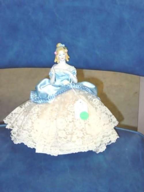 Jenny Lind Tea Cozy China Doll West Germany Limited Edition 1463/5000 wooden cone base 1/2 china doll 1985 9.5"