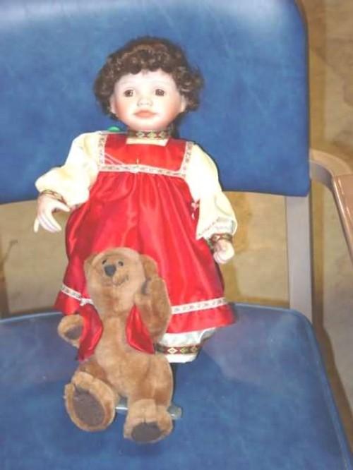Natasha with Bear "misha" Russian Girl by Kathy Barry-Hippensteel 1990 15.5" Porcelain & cloth