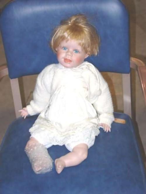 Lacey signed by artist Gustave Wolff 1996 weighted body 1992 21" marked #A-113 Porcelain & cloth