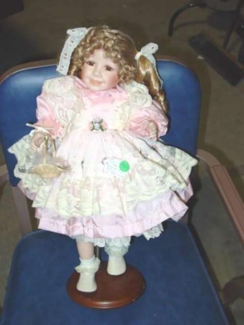 Girl in Pink signed by artist Gustave Wolff 1996 19.5" porcelain & cloth
