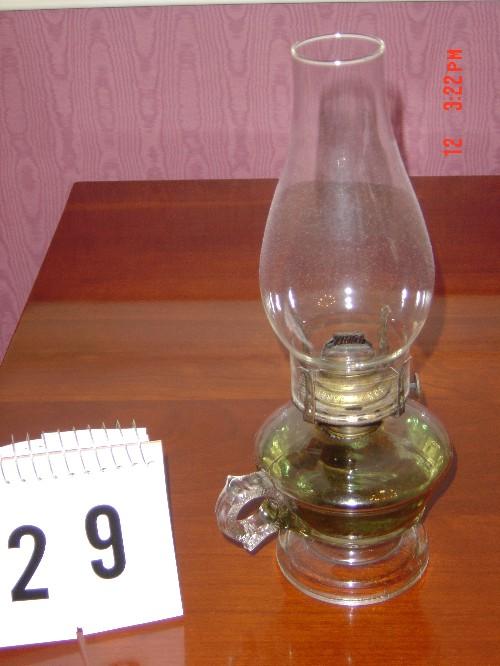 Lot 29 OIL LAMP - 12 1/4" TALL, CLEAR BASE, LOOPED HANDLE, clear chimney