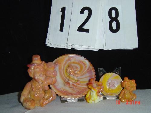 Lot 128 ALL THE WORLD LOVES A CLOWN - ORIE - 5 PIECES - TANGERINE SLAG - (M) (81)