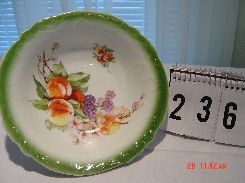 Lot 236 BAVARIAN SERVING BOWL WITH GREEN EDGE ON WHITE - PEACHES, BLACKBERRIES
