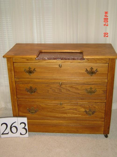 Lot 263 WALNUT 3 DRAWER CHEST WITH FEDERAL PULLS WITH BROWN MARBLE INSERT, BRASS KEYHOLES, CARVED BEADING TH