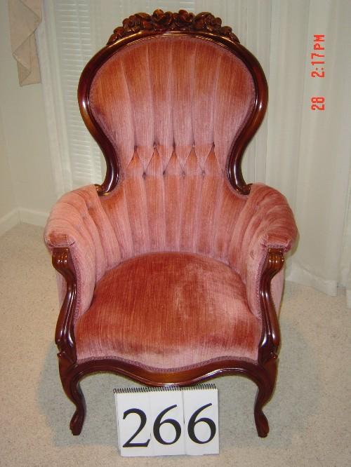 Lot 266 VICTORIAN REPRODUCTION ROSE CARVED TUFTED CHAIR - MAUVE VELVET
