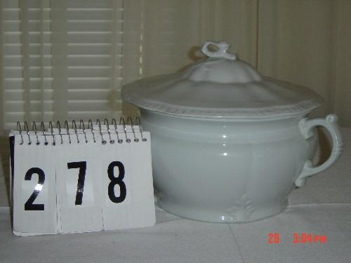 Lot 278 IRONSTONE CHINA - A. MEAKIN - CHAMBER POT - LID HANDLE BROKEN - SIDE HANDLE - 7"