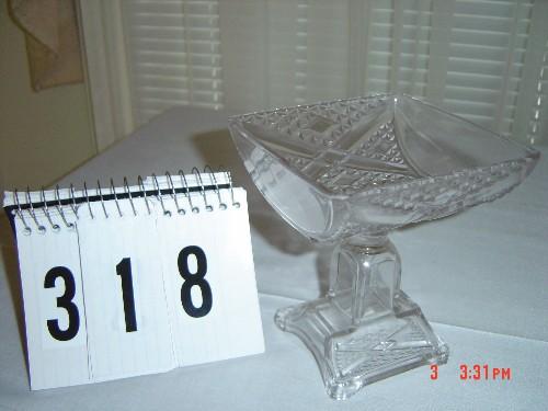 Lot 318 COMPOTE - clear glass with cross and square design, bowl is rounded at center with plain glass sides