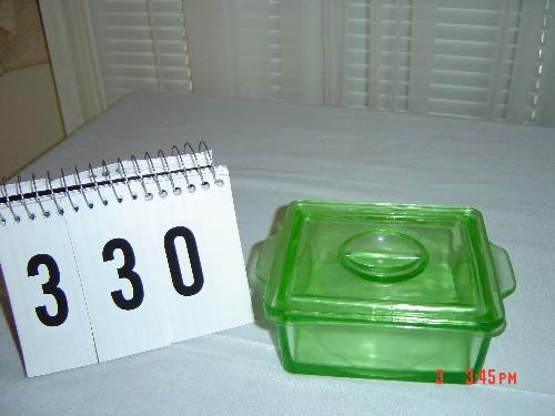 Lot 330 DEPRESSION GLASS - green refrigerator box with lid