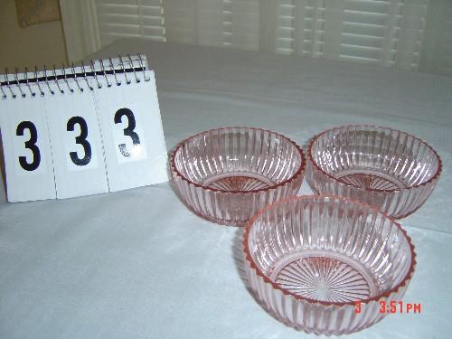 Lot 333 DEPRESSION GLASS - (3) pink berry bowls
