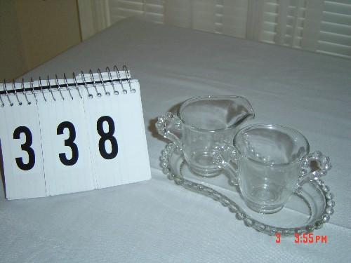 Lot 338 CANDLEWICK - creamer and sugar bowl on tray