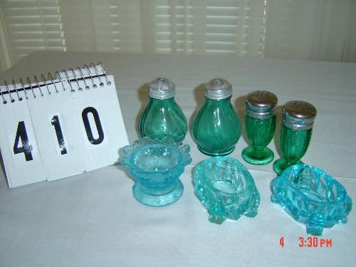 Lot 410 (3) MASTER SALTS - BLUE and GREEN, and (2) SALT/PEPPER SETS