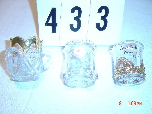 Lot 433 (3) TOOTHPICK HOLDERS - pressed glass with gold or handpainted