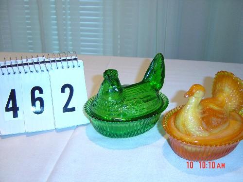 Lot 462 DEGENHART green HEN on NEST, BOYD kumquat TURKEY on NEST