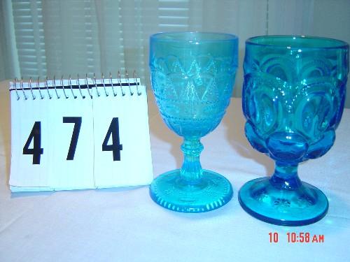 Lot 474 (2) BLUE PRESSED GLASS GOBLETS - unmatching